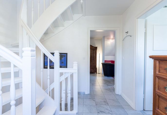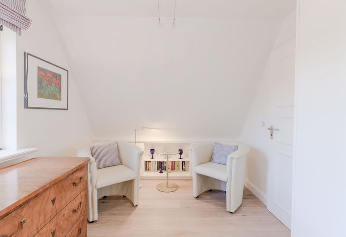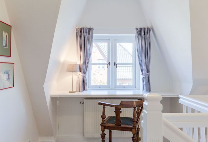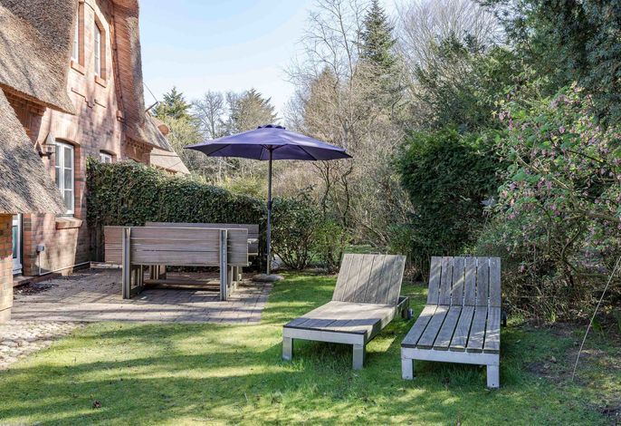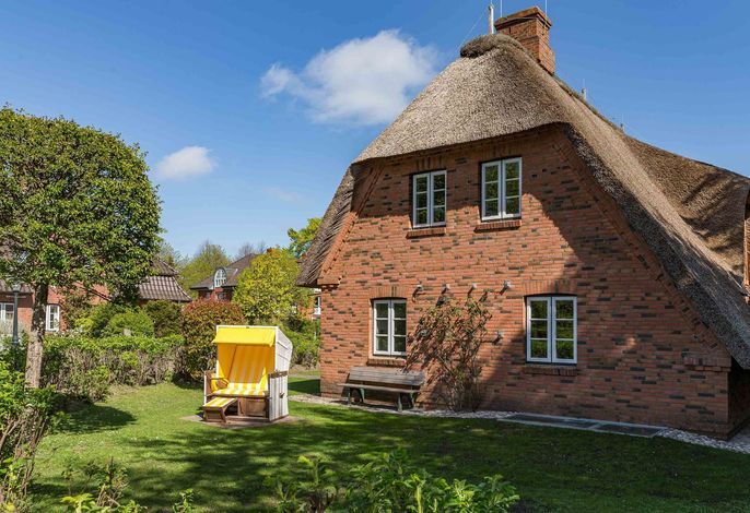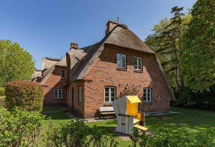 Diese Endhaushälfte unter Reet läßt für Gäste kaum Wünsche offen. Das tiefgezogene Reet und der für die Insel Föhr so typische Baustil gibt einem das Gefühl in einem der ältesten Häuser der Insel zu wohnen. Dabei muss auf keinen Komfort verzichtet werden. Die moderne Enrichtung bietet mit vielen ausgesuchten Details eine Menge, damit Ihre Urlaubswünsche in Erfüllung gehen. Sie wohnen direkt am alten Kurkpark und spüren in Ihrem Garten den Wind vom Meer wenn er durch die Blätter und Äste der mächtigen Zedern und Düneneichen streicht. Der Strand liegt in nur 100 Meter Entfernung. Wem es im gemütlichen Strandkorb am Haus denn doch einmal ein wenig zu langweilig wird, ist in etwa 15 Gehminuten im Trubel der kleinen Stadt von Wyk. Ein Haus zum Verlieben! **** Sterne