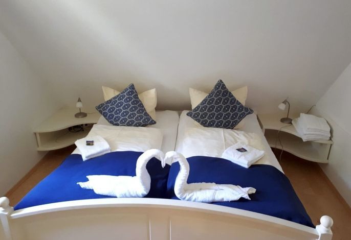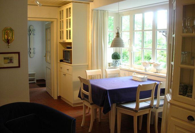 Das Reiheneckhaus ist 70 m² groß. Im Erdgeschoss befindet sich ein helles Wohn-Esszimmer mit antikem Kachelofen und direktem Zugang zur Terrasse mit hochwertigen Gartenmöbeln, Grill und einem gemütlichen Strandkorb. Außerdem die Küchenzeile, eine geräumige Garderobe und ein Gäste-WC. Im Obergeschoss erwarten Sie ein schönes und helles Schlafzimmer mit Doppelbett und ein Einzelbettzimmer, sowie ein Duschbad mit WC. Im ausgebauten Spitzboden findet eine weitere Person einen gemütlichen Nachtruhe-Platz. Ein Kinderreisebett und Kinderhochstuhl können gegen Gebühr zur Verfügung gestellt werden. Das Haus wird mit einer Fußbodenheizung beheizt. Haustiere sind herzlich willkommen (gegen Gebühr).