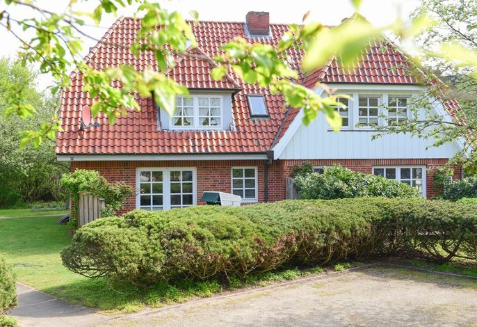 Die Erdgeschoßwohnung verfügt über ca. 55 m² Wohnfläche. Auf der Ebene befinden sich Eingangsdiele, Wohnstube mit ein Schlafsofa, Eßplatz mit Blick in den Garten, offene Einbauküche mit Ceranfeld, Schlafraum mit Doppelbett und ein modernes Duschbad/WC. Die Terrasse ist ebenerdig und wurde mit Gartenmöbeln und einem Strandkorb ausgestattet. Für 2 Erwachsene und 2 Kinder.