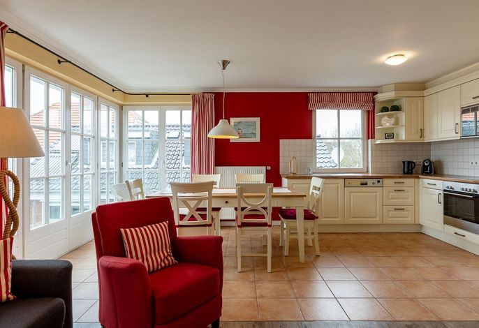 Herzlich Willkommen im Haus an der Altstadt. Mitten im Zentrum von Wyk, an der Badestrasse, direkt an der Altstadt gelegen, befindet sich diese wunderschöne Wohnanlage nur wenige Gehminuten von der Promenade und dem Badestrand entfernt. In unmittelbarer Nähe befinden sich alle Erholungs- und Einkaufsmöglichkeiten sowie Cafés und Restaurants. Die exklusive Obergeschosswohnung Nr. 8 erstreckt sich über 2 Etagen und ist mit einem französischem Balkon, dänischem Kaminofen, einer Sauna und 2 Bädern ausgestattet. Die Wohnung selbst befindet sich in einem 2-geschössigen Wohngebäude mit insgesamt 8 Wohneinheiten. Wir freuen uns auf Ihren Besuch. Seien Sie unser Gast.