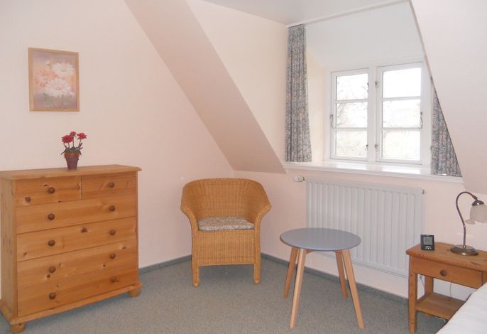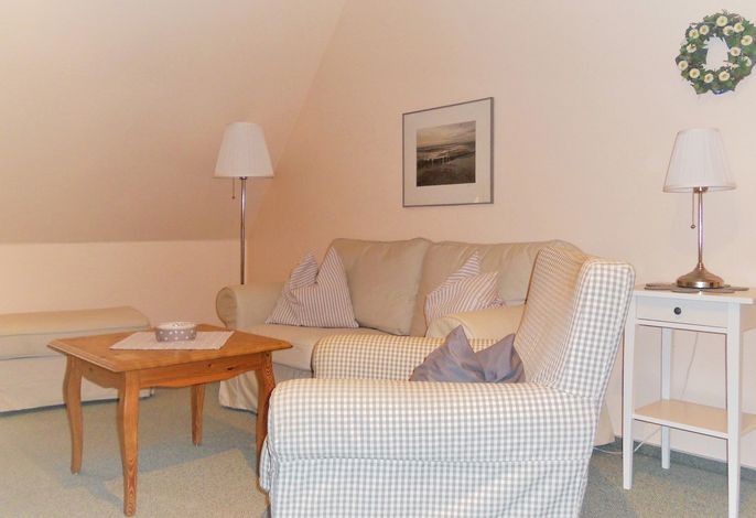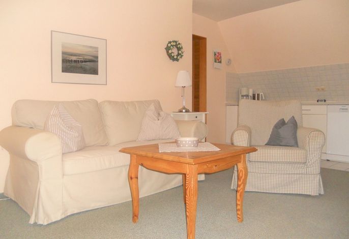 Im idyllischen Nieblum, dem wohl bekanntesten Dorf von Föhr, liegt das Friesenhaus Arfsten mit seinen Wohnungen Elena, Deichgraf und Schimmelreiter. Hier fühlen Sie sich sogleich Willkommen und Nieblum hat neben verschiedenen Restaurants, Cafés und der Surfschule noch allerhand mehr zu bieten. Unser Schimmelreiter im Haus Arfsten in Nieblum eignet sich ideal für 2 Personen und lädt zu herrlichen Urlaubstagen ein. Die ca. 45 qm große Wohnung auf der ersten Etage verfügt über ein hübsches Schlafzimmer mit Doppelbett, eine offene Küchenzeile mit Kühlschrank und Gefrierfach, Herd mit Ceranfeld sowie Geschirrspüler und einem gemütlichen Wohnbereich mit einem kleinen, sonnigen Essplatz direkt am Fenster. Das hell geflieste Duschbad verfügt über ein Fenster. In nur wenigen Schritten erreichen Sie den sogenannten Nieblumer Ententeich, dessen parkähnliche Gestaltung zum Verweilen einlädt oder Sie erkunden das malerische Dorf während eines Spazierganges.