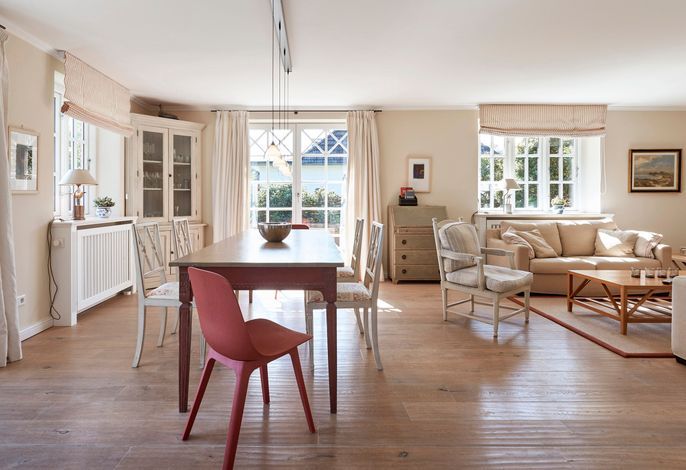 Wohnen Sie im Haus Auswanderer - eine schöne Reetdachhaushälfte. Sie wurde liebevoll und geschmackvoll eingerichtet und Sie werden Ihren Urlaub in vollen Zügen genießen. Ob Frühstück auf der Terrasse oder Relaxstunden in der...