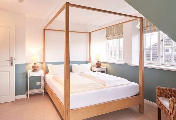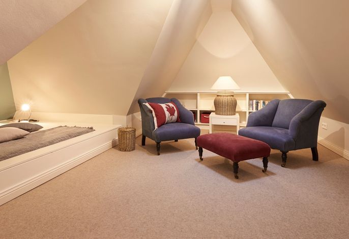 Wohnen Sie im Auswanderer Haus - Es wurde sehr liebevoll und gechmackvoll eingerichtet und Sie werden Ihren Urlaub in vollen Zügen genießen. Ob Frühstück auf der Terrasse oder Relaxstunden in der Sauna - hier steht Erholung pur auf dem Programm. Das Doppelhaus befindet sich in der Nähe des Dorfteiches von Nieblum. Das historische Friesendorf gilt seit langem als eines der schönsten Dörfer in ganz Norddeutschland. Die alten Kapitänshäuser in der direkten Nachbarschaft, gute Einkaufsmöglichkeiten, nur 800 Meter Entfernung zum Strand machen es zu jeder Jahreszeit zu einem unvergesslichen Urlaubsstandort. Herrlich, einmal in einem echten Dorf mit Kirche und Meere (Ententeich) zu leben.