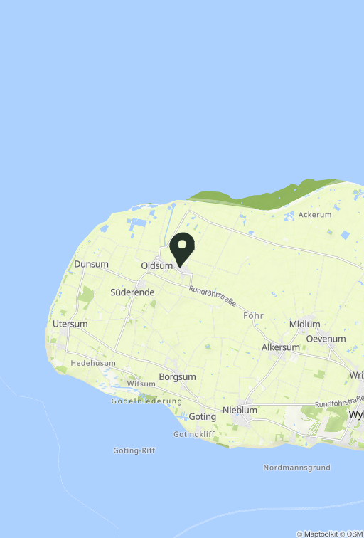 Oldsum ist eines der schönen, alten friesischen Dörfer auf der grünen Insel Föhr. Weite,grüne Marsch und der nahe Deich laden zu herrlichen Spaziergängen ein.