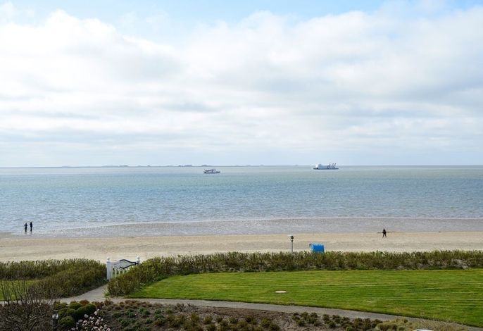 Genießen Sie den unverbauten Panoramablick auf die Nordsee und die Halligwelt - ob durch das große Fenster oder vom Balkon aus.