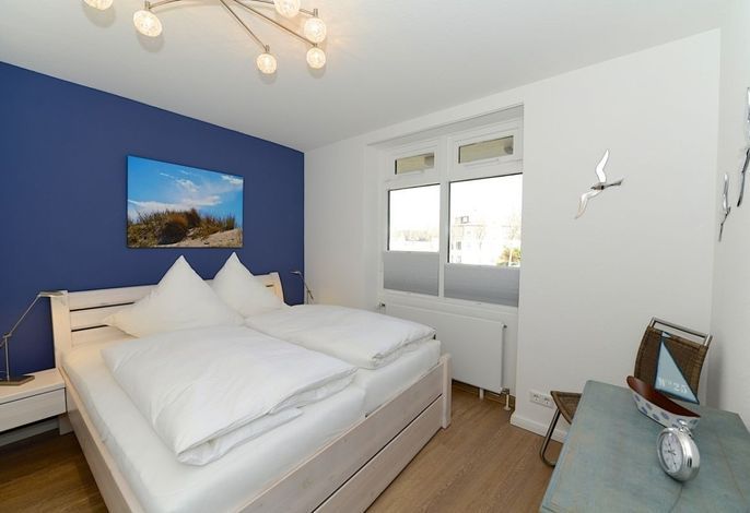 Im Schlafzimmer erwarten Sie ein bequemes Doppelbett sowie ein großer Einbauschrank mit viel Stauraum für Ihre Urlaubsgarderobe.