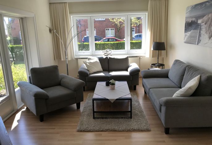 Kinderfreundliche Komforthaushälfte (ca 110 qm ) mit genügend Platz für 5 Erwachsene und 1 Kind in ruhiger Lage direkt am Südstrand.Merkmale: Unterstellmögl. für Fahrräder, Garten/Liegewiese; mit Zusatzkosten verbunden:...