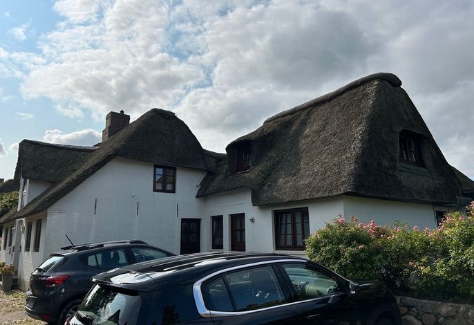 Unser Reetdachhaus liegt an einer ruhigen Strasse im alten Ortskern von Wyk-Boldixum in unmittelbarer Marschnähe. Wir haben 2 Ferienwohnungen, die über eigene Eingänge verfügen.Parkplätze befinden sich direkt am Haus. Fahrräder parken Sie in einem verschlossenem Abstellraum. Eine Gemeinschafts-Waschküche mit Waschmaschine und Trockner ist kostenfrei benutzbar. Ferner verfügen beide Wohnungen über kostenlosen WLAN-Zugang.