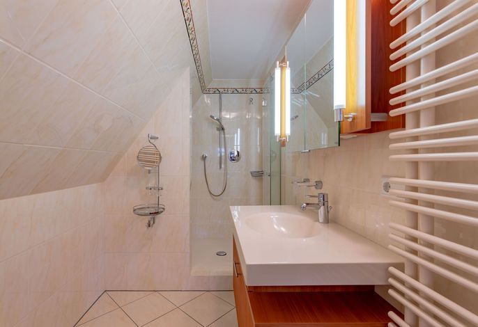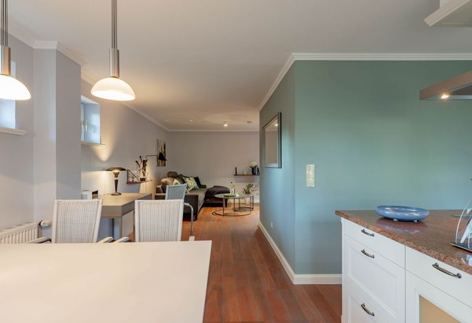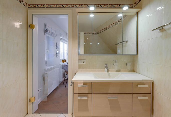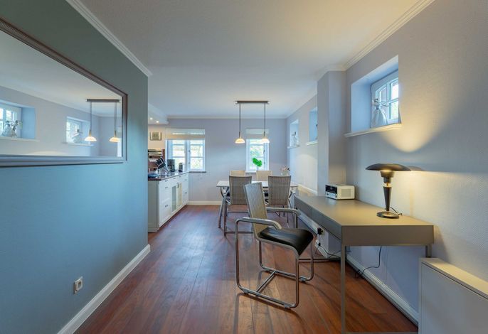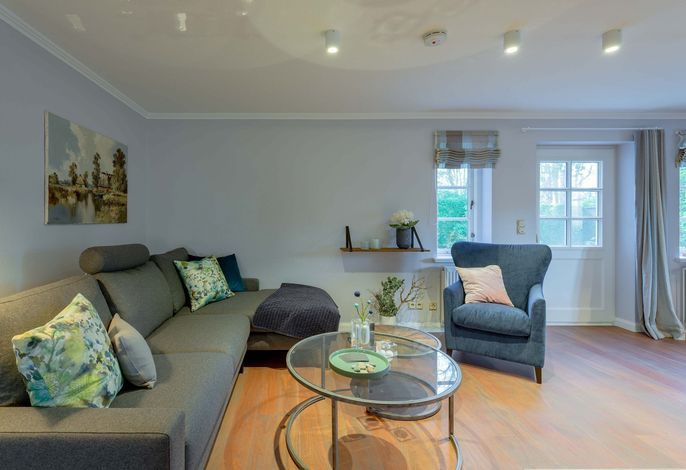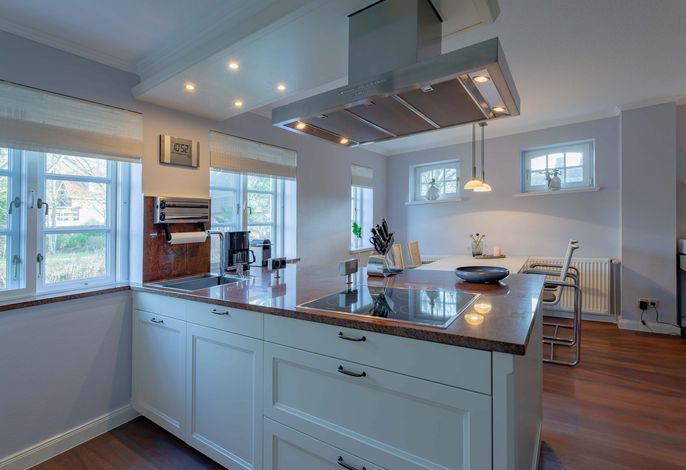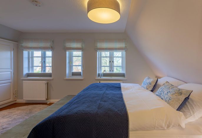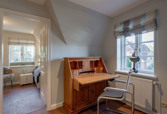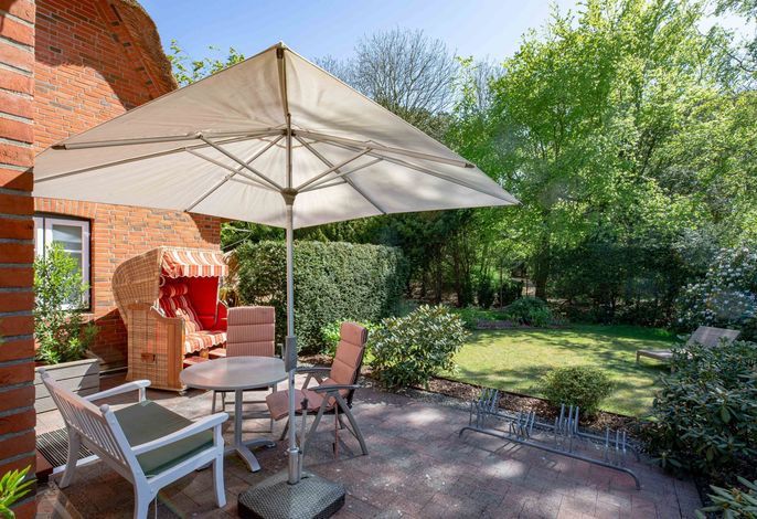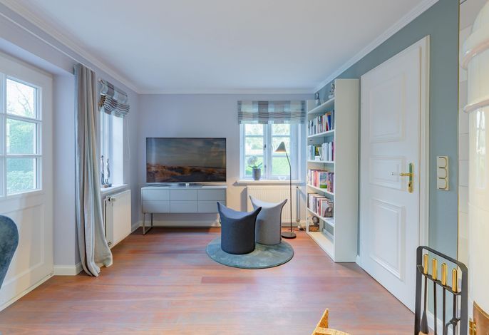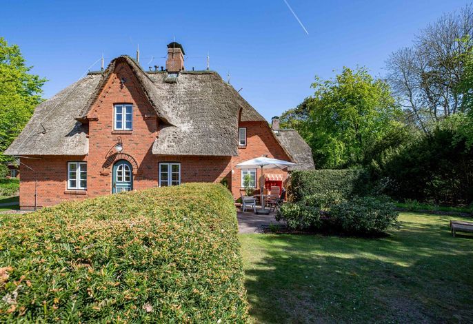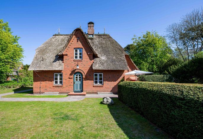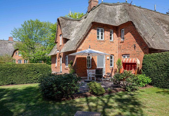 Wir begrüßen Sie im Haus Edda, unter dem Reetdach eines Drei-Parteien-Hauses im friesischen Baustil. Im Haus Edda stehen Ihnen 90 qm sowie ein separater Eingang zur Verfügung. Der kleine feine Garten grenzt direkt an den alten Kurpark in Wyk. Wenn Sie diesen durchqueren, gelangen Sie in wenigen Minuten zur Strandpromenade und haben von dort den freien Blick auf die Nordsee und die Halligen. Genießen Sie die Sonnenstunden im Strandkorb auf der Terrasse. Ein weiterer Strandkorb steht am Strand für Sie bereit. Für gemütliche Abende im Haus sorgt der schöne Mylin-Kachelofen – an windigen und kühlen Herbst- und Winterabenden genau das Richtige, um zu entspannen. Die perfekt ausgestattete Küche mit großer Kochinsel macht Lust auf gemeinsames Kochen. Es schließt sich der Essbereich an, der in den Wohnraum mit Leseecke übergeht. Ein Gäste-WC komplettiert das Erdgeschoss. Die beiden Schlafräume mit jeweils einem angrenzenden Bad befinden sich im Obergeschoss.
