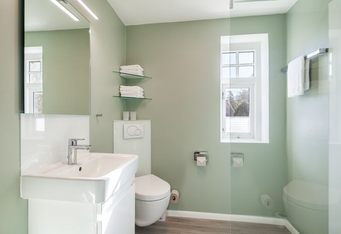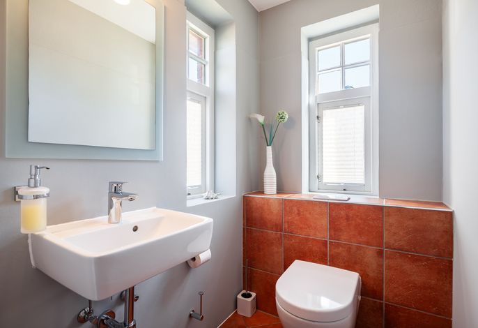 Auch die Küche mit Backofen, Herd mit Ceranfeld, Kühlschrank sowie Geschirrspülmaschine lässt keine Wünsche offen. Im Erdgeschoss befindet sich eine Gästetoilette.