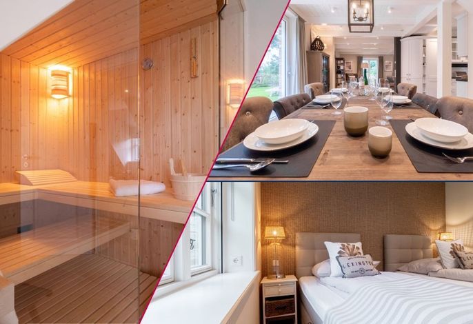 Zu den Highlights des exklusiv ausgestatteten Ferienhauses unter Reet zählen wir u. a. die hauseigene Sauna mit Ruheraum, den Original Mylin-Kachelofen sowie die exzellent ausgestattete Küche.