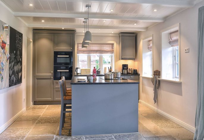 Das Herzstück ist die große Kochinsel mit Induktionskochfeld und integriertem