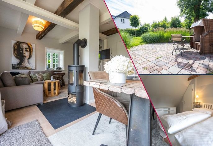 Zu den Highlights der Ferienunterkunft zählen wir u. a. den Kaminofen, die Terrasse mit Strandkorb im vollständig umzäunten und großzügigen Garten sowie die ruhige Lage.
