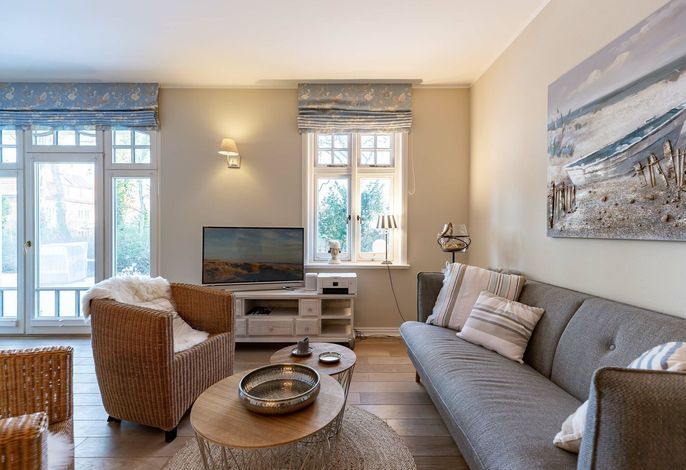 Verbringen Sie die schönste Zeit des Jahres in diesem wunderschönen Schmuckstück. Die alte Bädervilla aus dem Jahre 1910 ist ein traumhaftes Urlaubsdomizil mit bestechender Architektur und wunderbarer Lage. Die Nähe zum Wyker Südstrand und dem Nordseekurpark ist fast einmalig auf Föhr. Die Wohnung zwei liegt im Erdgeschoss und hat eine große Terrasse von knapp 75qm das Highlight der Wohnung. Hier genießen Sie jeden Sonnenstrahl und laden Ihren „Akku“ wieder auf. Die Einrichtung ist mit viel Liebe zum Detail, modern und geschmackvoll ausgestattet. Hier genießen Sie Ihren Urlaub in vollen Zügen.