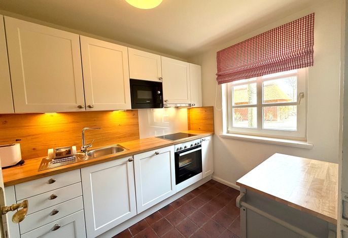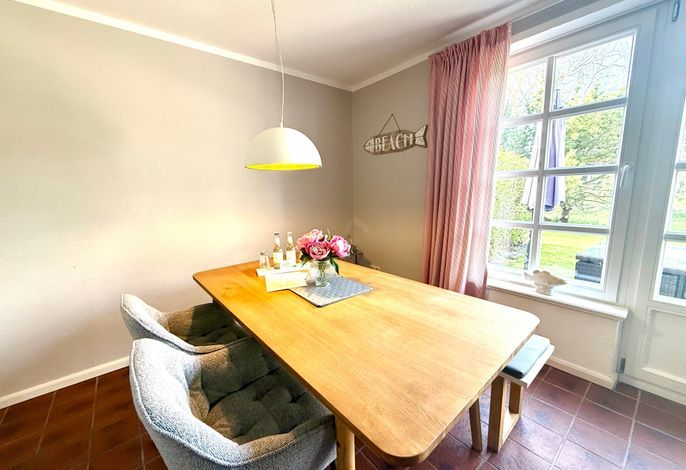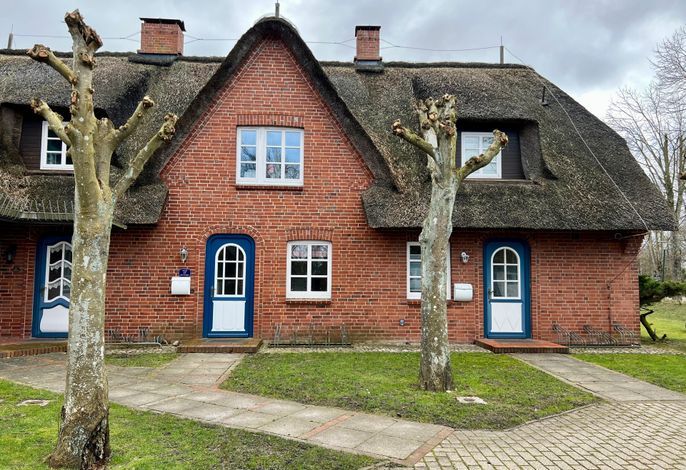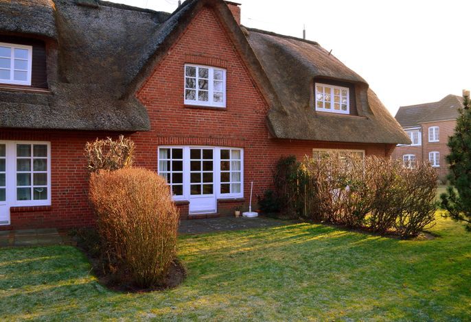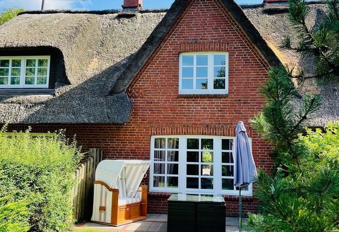 Im Dezember 2017 wurde das Haus Friesenfeuer für seine Feriengäste komplett neu ausgestattet. Auf einem sonnigen und großen Gemeinschaftsgrundstück gelegen, erstreckt sich das reedgedeckte Reihenmittelhaus über 85 Quadratmeter Wohnfläche auf zwei Etagen und bietet Platz für vier Personen plus Kleinkind. Es verfügt im Erdgeschoss über einen großzügigen und gemütlichen Wohn- und Essbereich, eine separate vollausgestattete Küche und ein geräumiges Badezimmer mit Dusche. Im Obergeschoss befindet sich ein großes Schlafzimmer mit Doppelbett, ein Kinderzimmer mit Etagenbett und ein weiteres Badezimmer mit Badewanne und kostenfrei nutzbarer Waschmaschine. Der ausgebaute Dachbereich kann als Abstellraum oder Spielzimmer für Kinder genutzt werden. Die sonnige Südwestterrasse mit zugehörigem gepflegten Garten lädt zum Verweilen ein. Ein Kfz-Stellplatz sowie eine geschützte Abstellmöglichkeit für Fahrräder befinden sich ebenfalls auf dem Grundstück.