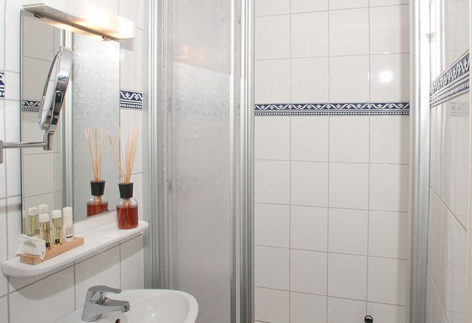 Das kompakte Badezimmer mit Dusche und WC ergänzt den Komfort dieser einladenden Wohnung.