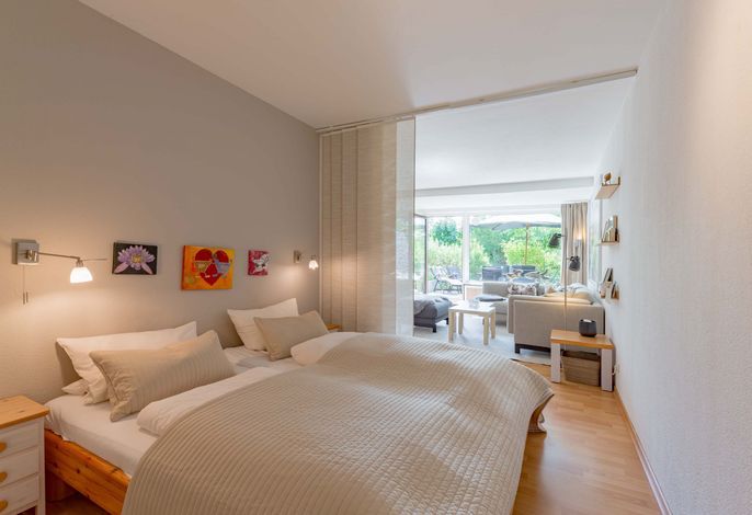 Zwischem dem Wyker Südstrand und Nieblum steht das beliebte Terrassenhaus Haus Halligblick. Die Lage ist wohl einmalig: direkt am Meer, mit Blick nach Süden in Richtung der Halligen in bester Umgebung. Ganz in der Nähe ist der Golfplatz und der Sportflugplatz. Beide sind bequem zu Fuß zu erreichen. Von dort ist es nur ein Sprung nach Greveling, der Gruppe von Reethäusern im Friesenstil. Nach Nieblum, einem der schönsten Orte Schleswig-Holsteins, ist es kaum weiter als zum Zentrum Wyks. Nicht ohne Grund gilt der Südstrand als Geheimtip.
