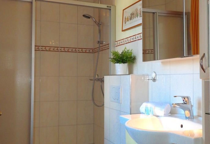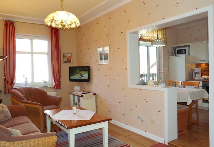Die Wohnung 1 befindet sich in der 1. Etage und hat eine Größe von ca. 48 qm und und kann mit 2-3 Personen belegt werden. Sie hat 1 Wohn- und 1 Schlafzimmer, 1 Duschbad und eine neue, moderne Küche mit Sitzecke. Alle Räume sind hell und geschmackvoll ausgestattet. Zu der Wohnung gehört ferner ein großer Balkon.