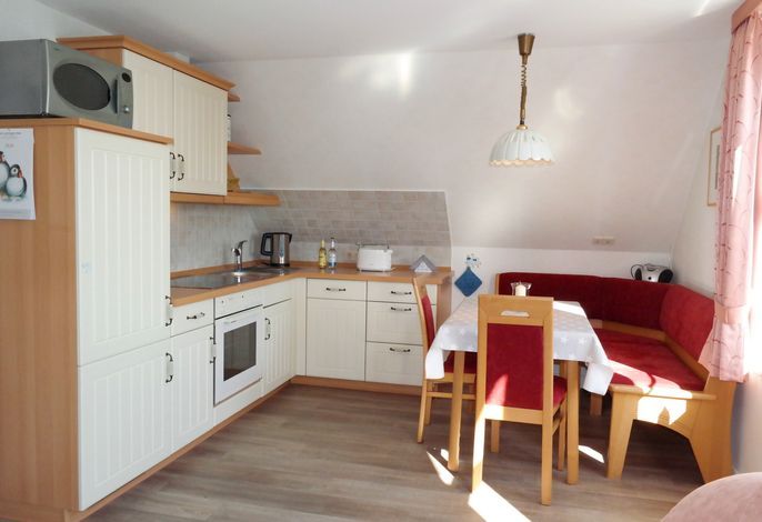 Alle Räume sind hell und geschmackvoll ausgestattet. Die integrierte moderne Küche ist mit komfortablen Elektrogeräten ausgestattet und verfügt außerdem über eine gemütliche Sitzecke.