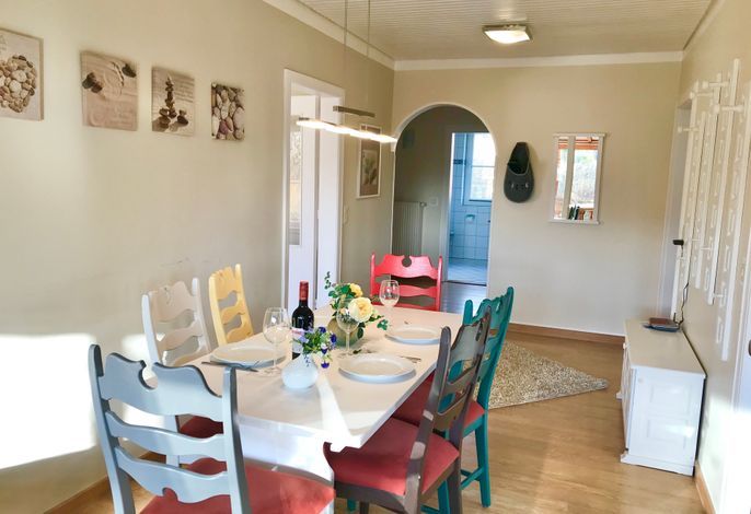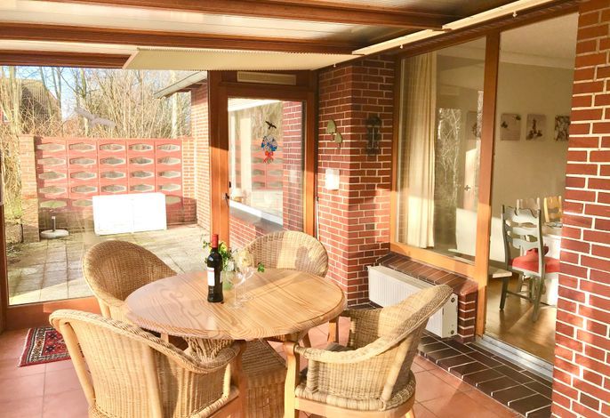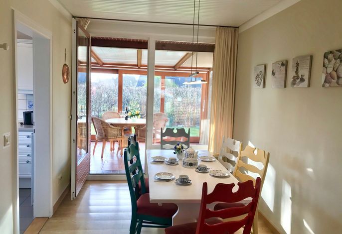 Die Wohnung im Erdgeschoß ist optimal für 4 - 6 Personen geeignet. Besonders herauszuheben ist der wunderschöne Wintergarten. Der große Garten bietet ausreichend Platz zum Sonnen, erholen und zum Spielen. Eine Waschmaschine , Trockner und Wäscheleinen im Garten steht den Gästen der beiden Wohnungen gemeinschaftlich zur Verfügung. Die Wohnung liegt nur wenige Meter vom wunderschönen Utersumer Strand entfernt. Hier können Sie sich auch sportlich mit serfen betätigen. Fußläufig vom Haus Heike befindet sich im Dorf ein Edekamarkt, ein Bäcker und Fahrradverleih sowie mehrere Restaurants und Cafés. Auf keinen Fall sollten Sie sich den berühmten und unvergesslichen Sonnenuntergang am Utersumer Strand entgehen lassen.