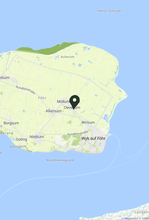 Die Lage im schönen Inseldorf Oevenum ist Ausgangspunkt für ausgedehnte Fahrradtouren, Spaziergänge und Bummel über den dorfeigenen Wochenmarkt, welcher in der Saison immer donnerstags stattfindet. Die Wyker Innenstadt ist 2,8 km entfernt und schnell - auch mit dem Fahrrad - zu erreichen. Der Nieblumer Strand ist 5,6 km entfernt, der Wyker Strand 3,5 km. Die Oevenumer Backstube ist fußläufig in wenigen Minuten zu erreichen. In unmittelbarer Umgebung befinden sich ein ansehnlicher Dorfplatz und der beliebte Kinderspielplatz, das Friesental.