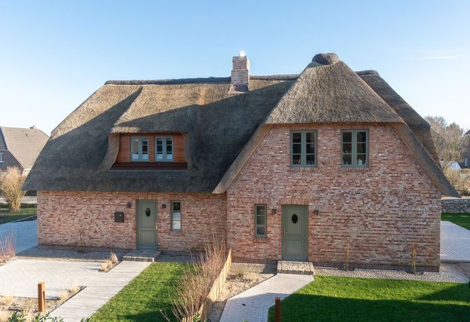 Die neue reetgedeckte Doppelhaushälfte Haus Hilde verfügt über 3 Schlafzimmer und 2 Bäder und bietet somit komfortabel Platz für bis zu 5 Personen zuzüglich einer Kleinkinderaufbettung. Auch ein Hund ist hier herzlich willkommen.