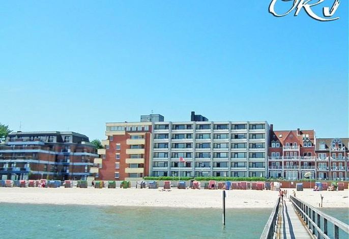 Die Wohnung hat ca.45 qm und ist in der 2. Etage (natürlich mit Aufzug). Den Gästen - bis zu 4 Pers. - stehen eine Eingangsdiele, Duschbad, kleines Schlafzimmer mit zwei Einzelbetten und eine ca. 25 m² große Wohn-/Eßstube zur Verfügung. Im sehr gemütlichen Wohnbereich befindet sich eine exclusive Küchenzeile, Essplatz und ein Schlafsofa für zwei Personen. Radio, Farb-TV stehen selbstverständlich bereit. Der Wohnbereich bietet absolut freien Meeresblick. Das gilt auch für den großen überdachten Balkon, der dazu einlädt, dem Meeresrauschen zuzuhören und die frische Seeluft zu schnuppern. Die tolle Ferienwohnung wurde im Frühjahr 2008 komplett saniert und auf den neuesten Standard gebracht: Komfort, den Sie in Ihrem wohlverdienten Urlaub nicht missen sollten.