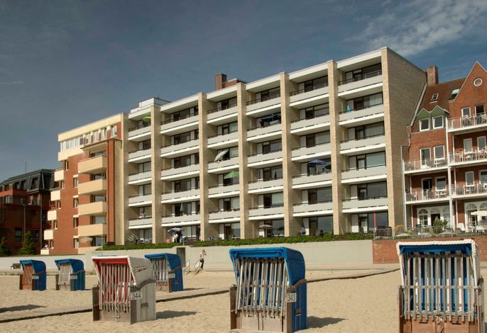 Das Haus Irma befindet sich am Sandwall 21 in Wyk auf Föhr direkt zu Beginn der Fußgängerzone, die sich über den Stadtkern mit den vielen Restaurants, Cafés und Geschäften erstreckt. Das Haus Irma liegt unmittelbar an der Strandpromenade mit direktem Zugang aus dem Gebäude zum Strand (nicht im Winter wegen Sturmflutschutz). Alle Wohnungen haben vom überdachten Balkon oder der Terrasse einen wunderschönen Ausblick vom Hauptstrand bis hinüber zu den nordfriesischen Halligen. Das Haus ist zu Fuß in 15 Min. vom Hafen zu erreichen. Kommen Sie mit dem Pkw, stehen Parkplätze auf den 3 Min. entfernten öffentlichen Wellenbadparkplatz zur Verfügung. Zum Ein- und Ausladen dürfen Sie am Haus parken. Abstellmöglichkeiten für Fahrräder befinden sich direkt am Haus. Bitte fragen Sie bei kurzfristiger Buchung nach Sonderangebote.