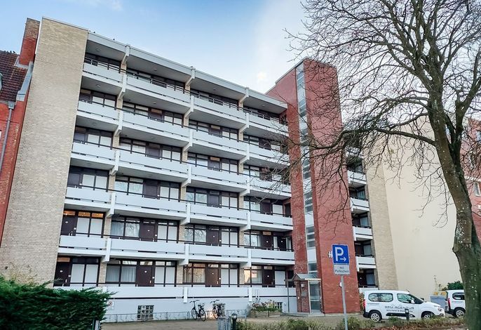 Die 3-Zimmer-Wohnung befindet sich im fünften Obergeschoss und unterteilt sich in einen gemütlichen Wohn- und Essbereich mit offener Küche, ein Duschbad sowie zwei Schlafzimmer - eines mit einem Doppelbett und eines mit einem Einzelbett ausgestattet. Über den Wohnbereich gelangen Sie auf den eigenen überdachten Balkon.
