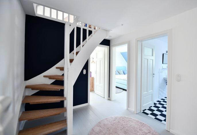 Im Obergeschoss befinden sich zwei Schlafzimmer ( Doppel- und Einzelschlafzimmer)sowie ein weiteres Duschbad mit Toilette.