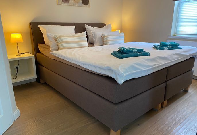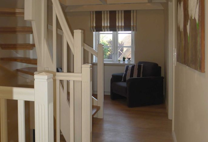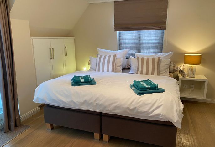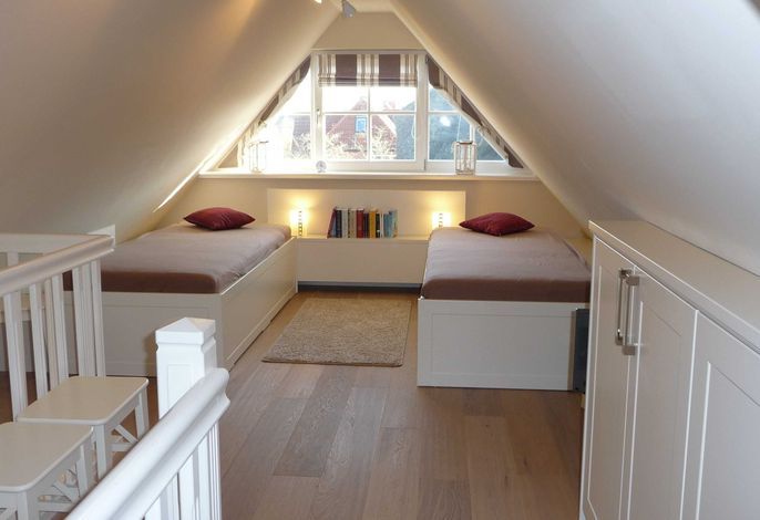 Freuen Sie sich auf ein großzügiges und komfortables Einzelhaus am Wyker Südstrand. Mit einer großen Kastanie vor der Terrasse, im schön angelegten Garten. Auf ein Haus mit viel Komfort und viel Platz. Und auf eine Topp-Ausstattung. Z. B. auf vom Inseltischler gefertigte Tische und Einbauschränke, auf eine offene Galerie im Obergeschoss und auf einen separaten Wellness- und Fitnessbereich im Keller, ausgestattet mit hochwertigen Trainingsgeräten. Zudem haben beide Schlafzimmer im Obergeschoss eine Loggia zum Garten hin.
