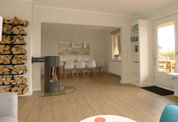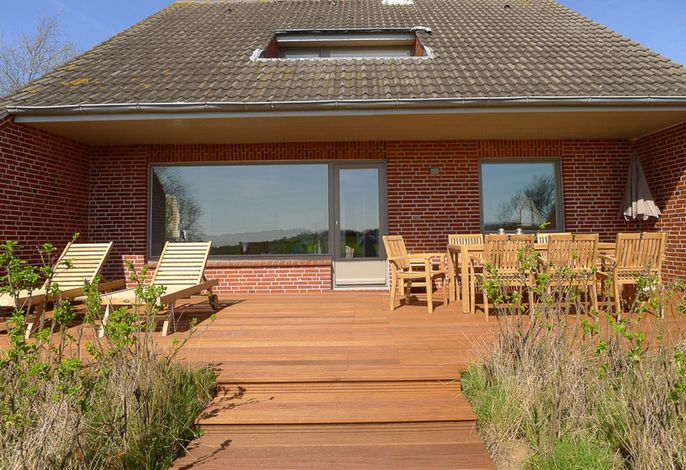 Der Küstenvogel Knutt - auch Knuttstrandläufer genannt - stand Pate für den Namen des Hauses. Er fühlt sich am Wattenmeer ganzjährig zu Hause. Seien Sie auch zu jeder Jahreszeit unser Gast und genießen die Insel und das Meer im kalten Winter, stürmischen Herbst, erwachenden Frühling und natürlich zur Strandkorbzeit im Sommer. Das Haus bietet der gesamten Familie Platz. Es wurde liebevoll eingerichtet, damit Sie sich wie zu Hause fühlen. Das Haus Knutt hat einen großen, nach Süden ausgerichteten Garten (über 1000 m²) mit einer großzügigen, windgeschützten Teakholzterrasse. Es besteht ein unverbauter Blick auf Wiesen und den Deich. Vom Balkon des Obergeschosses kann man das Meer sehen.