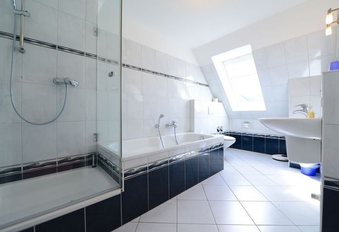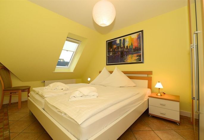Im hinteren Bereich des Wohnzimmers finden Sie ein bequemes Schlafsofa für zwei Personen, das Ihnen bei Bedarf zusätzlichen Platz bietet. Das separate Schlafzimmer verfügt über ein gemütliches Doppelbett und einen großzügigen Kleiderschrank, sodass Sie Ihre Sachen bequem verstauen können. Das geräumige Badezimmer bietet sowohl eine Badewanne als auch eine Dusche – hier können Sie sich nach einem erlebnisreichen Tag perfekt entspannen.