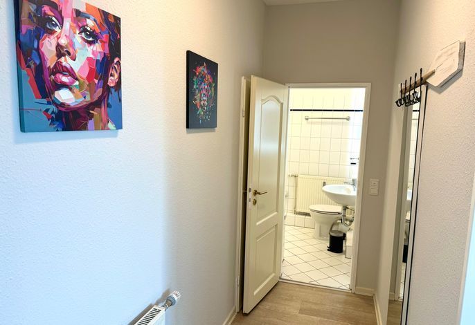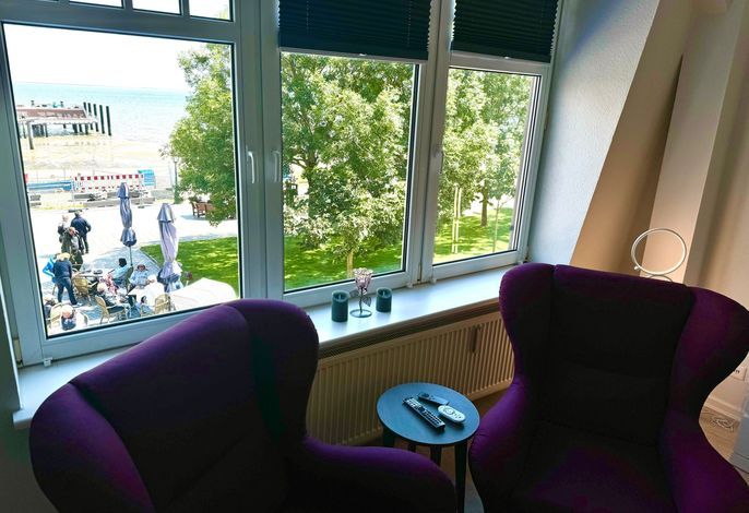 Auf ca. 40 m² ist hier Platz für 2 erwachsene Personen im Obergeschoss des Haus Meerblick, direkt am Sandwall an der Wyker Promenade.