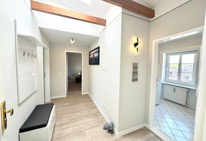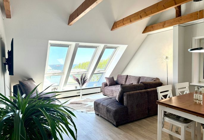 Auf ca. 65 m² ist hier Platz für 2-3 erwachsene Personen im 2.Obergeschoss des Haus Meerblick, direkt am Sandwall an der Wyker Promenade.