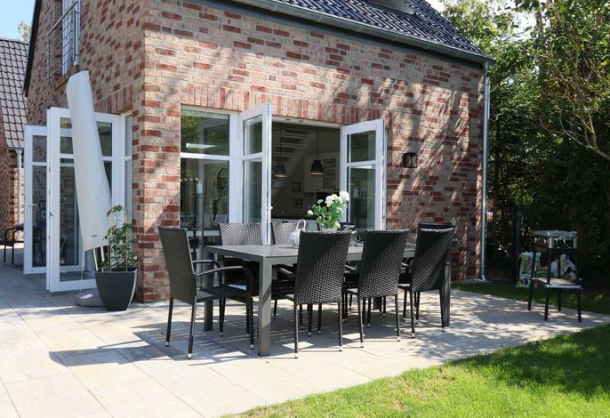 Das Ferienhaus ist ca. 130 qm groß und bietet 4 Schlafzimmer für insgesamt 7 Personen. Zwei helle freundliche Badezimmer mit Duschbereich, im Erdgeschoss barrierearm, sorgen dafür, dass es am Morgen nicht zu Wartezeiten kommt. Im großzügig und gemütlich eingerichteten Wohn-Esszimmer befindet sich die modern eingerichtete Küche, in der Sie alles finden, was für einen gelungenen Urlaub nötig ist. Von hier haben Sie Zugang zur Süd-Westterrasse und Garten mit Liegewiese. Im Erdgeschoss befindet sich ein Schlafzimmer mit Doppelbett und ein Bad. Ein Hauswirtschaftsraum mit Waschmaschine und Trockner sorgt für weiteren Komfort. Die Räumlichkeiten im Erdgeschoss sind barrierearm. Die Türen innerhalb des Erdgeschosses haben ein Durchgangsmaß von 86 cm. Der Zugang für z. B. Rollstuhlfahrer ist über die Eingangstür bei der Terrasse möglich. Das Obergeschoss bietet 2 weitere Schlafzimmer mit Doppelbett, sowie 1 Schlafzimmer mit 2 Einzelbetten. Außerdem das zweite Bad. Dieses Haus ist somit gerade für große Familien gut geeignet. Zwei PKW Stellplätze und ein abschließbares Fahrradhäuschen befinden sich auf dem Grundstück. Zwei Pkw-Stellplätze inkl. Ladestation für ein E-Auto, Elektrogrill für die Terrasse. Fußbodenheizung im Bad. Ein kleiner Hund ist gegen Gebühr willkommen.