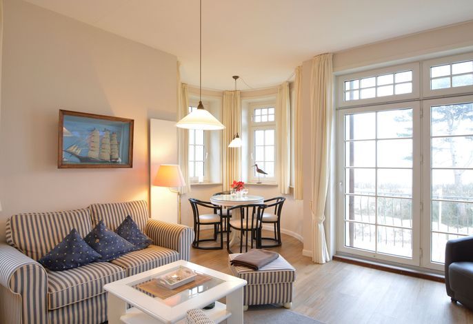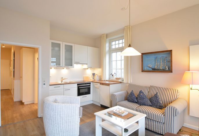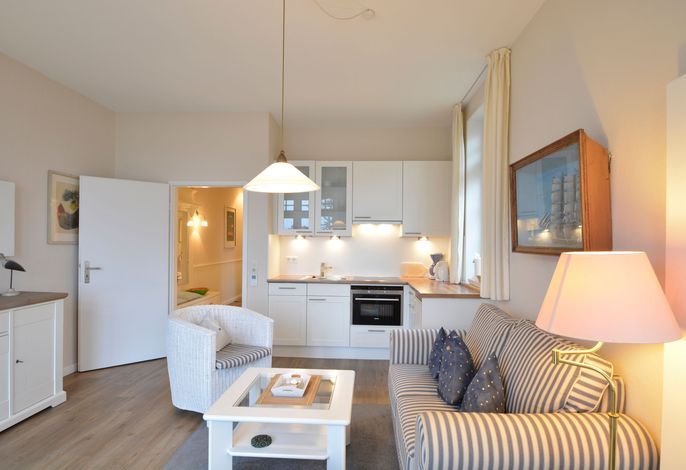 Genießen Sie den herrlichen Blick auf das Meer und die Halligen von Balkon und der Wohnung im 2.OG, in die der runde Erker im Turm mit einem Essplatz einbezogen ist.Alles ist sehr hell und freundlich gestaltet - hier fühlen Sie...