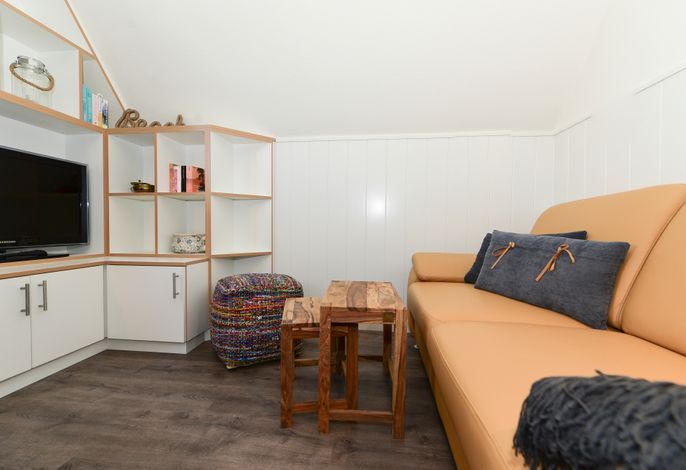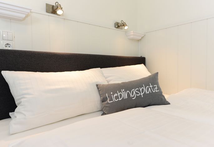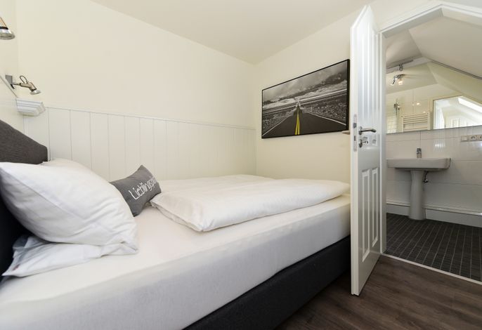 Das kleine, kuschelige Schlafzimmer ist mit einem neuen Boxspringbett ausgestattet, und das Bad mit Außenfenster verfügt über eine fast ebenerdige Dusche. Die geschmackvollen Accessoires machen diese Wohnung zu einer Wohlfühloase für Ihren Föhr-Urlaub.