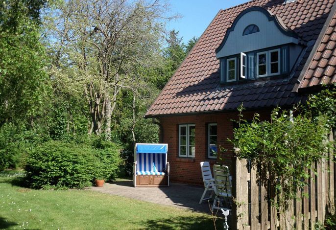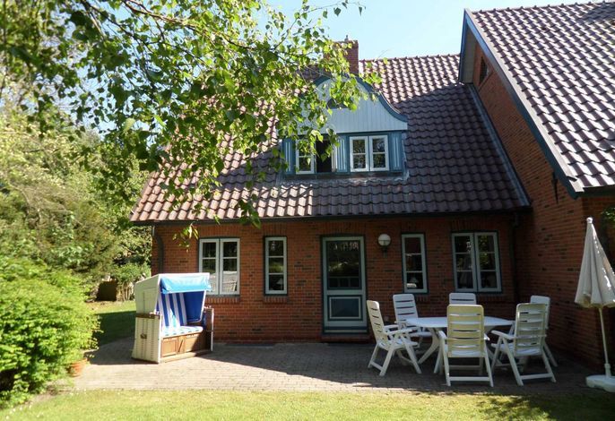 Unseren Gästen steht die rechte Hälfte eines sehr gepflegten Doppelhauses (Süd/West-Lage) zur Verfügung. Es liegt in einem gut eingewachsenen Garten, der bei Hitze Schatten spendet, aber auch zum Sonnenbaden auf der Terrasse einlädt. Hier gibt es ausreichend Gartenmöbel und einen Strandkorb. Ein Parkplatz befindet sich auf dem Grundstück.