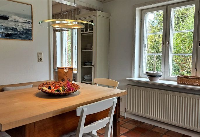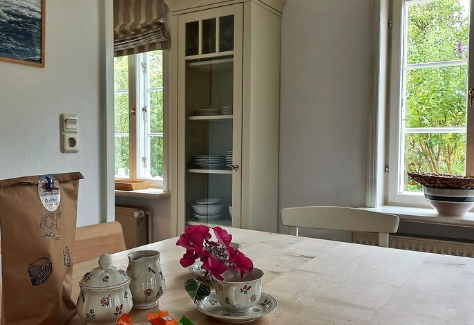 Im Erdgeschoss finden sich die vollausgestattete Küche offen zum Essbereich und Wohnzimmer. Vom gemütlichen und liebevoll eingerichteten Wohnzimmer kommen Sie direkt auf die Terrasse und in den Garten mit Gartenmöbeln und Strandkorb. Ein Gäste-WC mit Fenster befindet sich ebenfalls im Erdgeschoss. Im Obergeschoss finden Sie das Schlafzimmer (Bett 160cm x 200cm), in dem man sich nur Wohlfühlen kann, ein Kinderzimmer mit zwei Einzelbetten (80cm x 200cm)und das Badezimmer mit Dusche. Per Fahrrad sind Sie in ca. 15 Minuten am schönsten Strand der Insel, mit Blick auf Amrum und Sylt. Sie brauchen nur wenige Minuten mit dem Fahrrad zum Einkaufen, ins Cafe oder Restaurant. Auch der alte Süderender Ortskern und seine nähere Umgebung laden zu ausgedehnten Spaziergängen oder Radtouren ein. Genießen Sie einfach die Ruhe und lassen den Alltag einfach mal hinter sich- Natur pur!