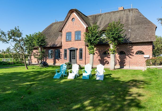 Der reetgedeckte Ferienhausteil Seeadler verfügt über 4 Schlafzimmer, 4 Bäder und 1 Gäste-WC und bietet somit komfortabel Platz für bis zu 8 Personen zuzüglich einer Kleinkinderaufbettung. Auch ein Hund ist hier herzlich willkommen.