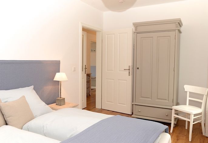Im Erdgeschoss befinden sich zwei gemütliche Schlafzimmer, eines mit Doppelbett und das andere mit zwei Einzelbetten.
