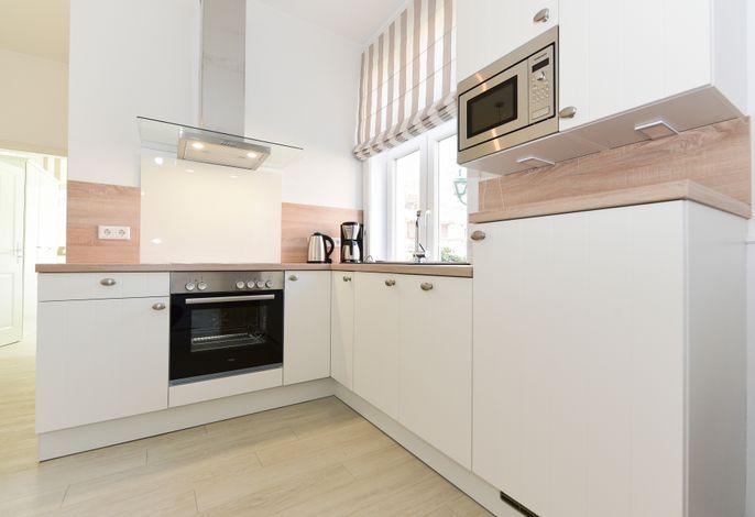 Die moderne Küche ist komplett ausgestattet und lässt keine Wünsche offen. Im Schlafzimmer erwartet Sie ein bequemes Doppelbett, das für erholsamen Schlaf sorgt. Der große Kleiderschrank bietet genug Platz für Ihre Urlaubsgarderobe.