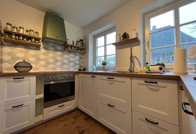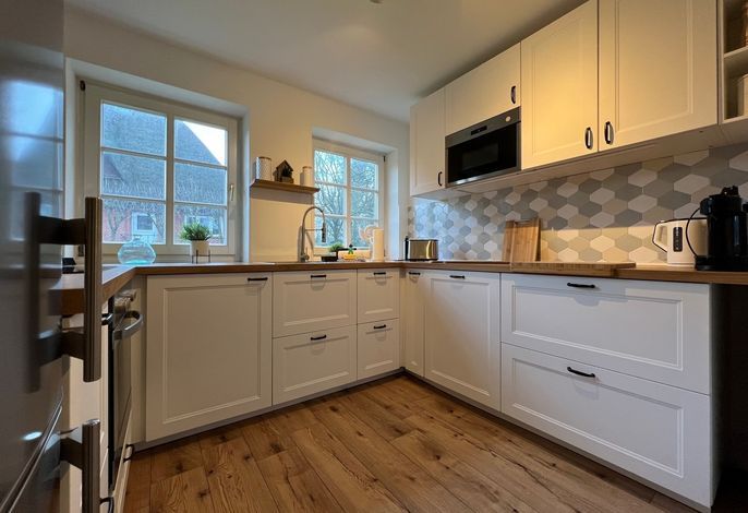 Zu den zahlreichen Highlights dieses gemütlichen und komfortabel ausgestatteten Hauses zählen wir u. a. die geschmackvolle Einrichtung, die große Fasssauna sowie das riesige, eingezäunte Naturgrundstück mit eigener Terrasse mit Grillmöglichkeit, Strandkorb, Gartenmöbel, Kamin und die Strandnähe (Hundestrand!) Die Küche ist mit allen Utensilien und Küchengeräten, wie z.B. Induktionsherd, Senseo wahlweise Pad oder Filterkaffeemaschine, Wasserkocher, Mikrowelle, Umluftbackofen, Kühl-/Gefrierkombi, Toaster und genügend Töpfen und Schüsseln zum Kochen, Braten und Backen ausgestattet.