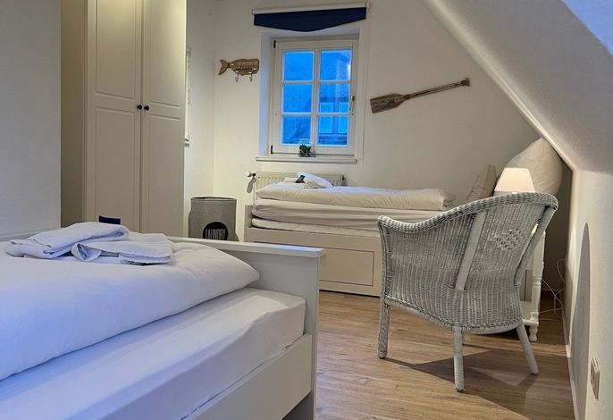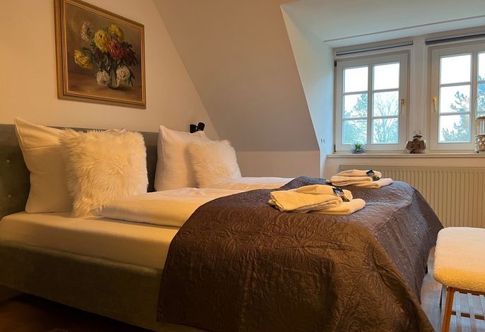 Sie haben hier entweder 2 Einzelbetten oder alternativ ein Doppelbett (160x200cm) mit hochwertigen Matratzen. So können Sie entweder als Familie mit 2 Kindern oder mit einem befreundeten Pärchen anreisen!