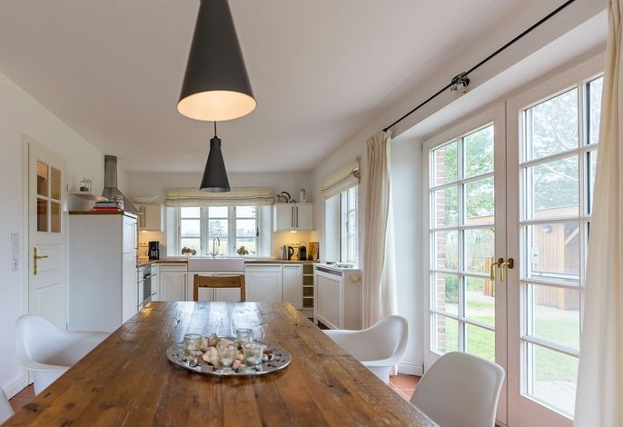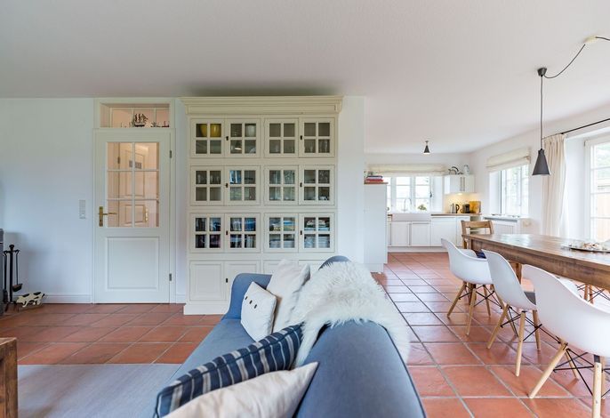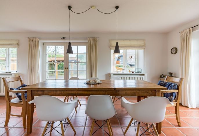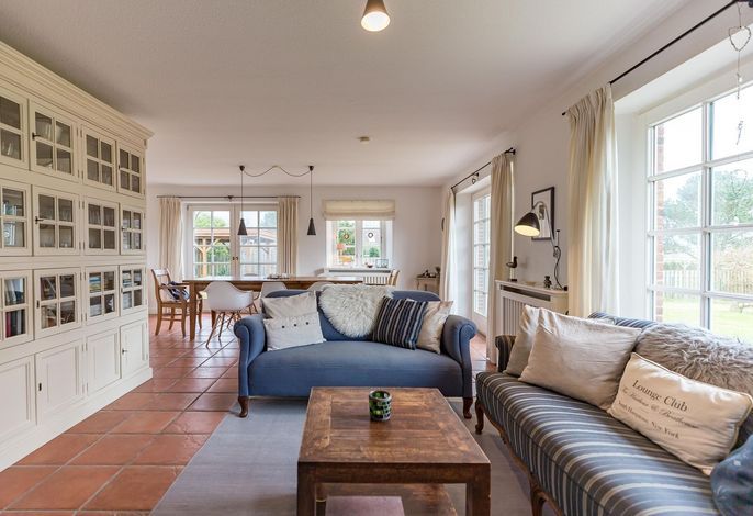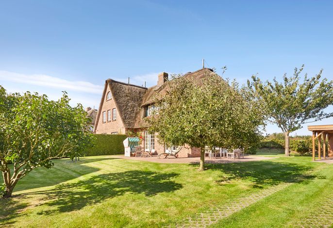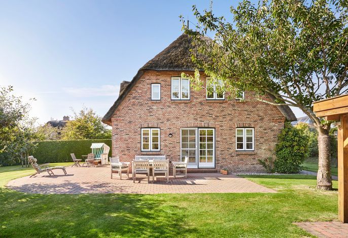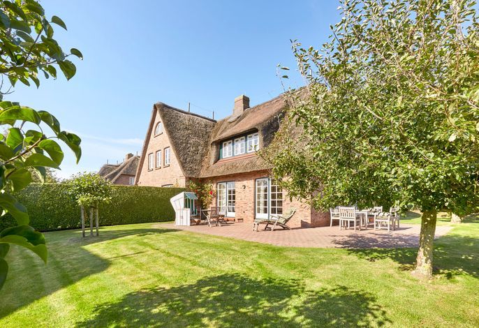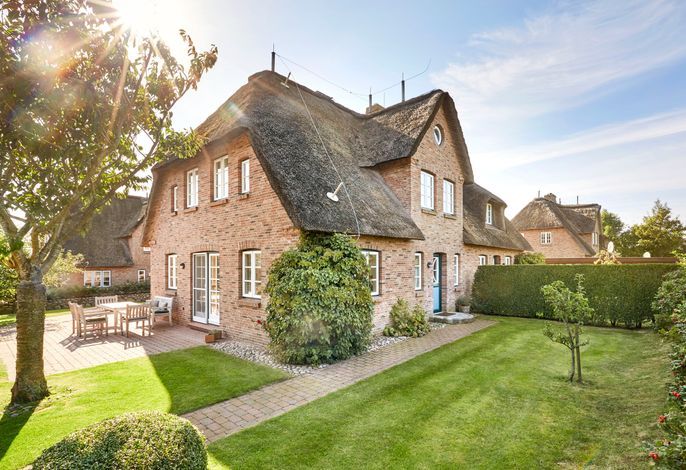 Nur wenige Gehminuten vom Meer und Naturstrand entfernt liegt das wunderbar gepflegte Reetdachobjekt auf einem 500 qm großen Grundstück an der Traumstraße. Hier können Sie Nordseeurlaub pur genießen. Morgens weht der Wind die salzhaltige Luft vom Meer direkt durch Ihre großzügige Haushälfte mit einem lichtdurchfluteten Wohn- und Essbereich. Entweder gehen Sie nun sofort zum Strand, oder Sie genießen einfach einen schönen Tag im Haus oder auf einer der beiden Sonnenterrassen. Die gemütlich eingerichtete Haushälfte bietet jede Menge Platz und viel Komfort für einen erholsamen Urlaub!
