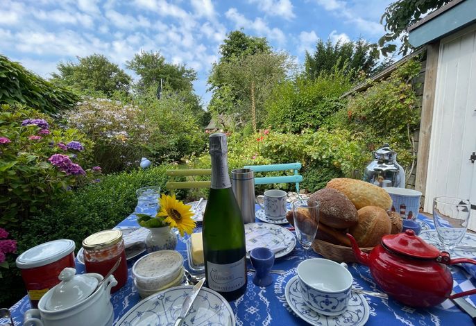 Denkmalgeschütztes Reetdachhaus (1779), im Ortskern von Nieblum, ruhige Lage, Südterrasse und Garten, antike Möbel, friesische Fliesen, teilweise Holzpaneel, 2 Schlafzimmer mit Doppelbetten und zusätzlich 2 Alkovenbetten für...
