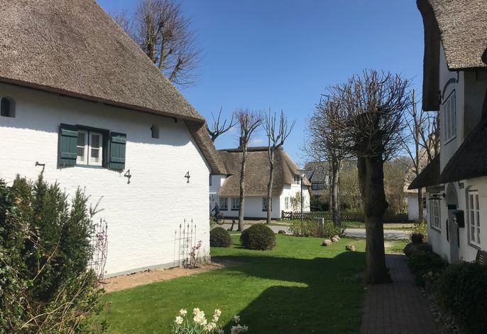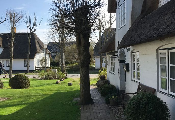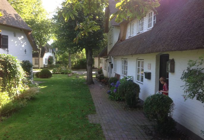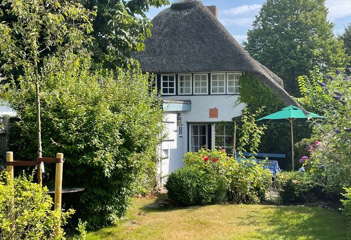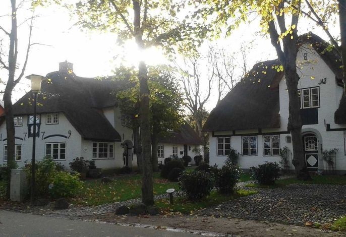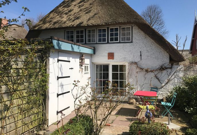 Denkmalgeschütztes Reetdachhaus (1779), im Ortskern von Nieblum, ruhige Lage, Südterrasse und Garten, antike Möbel, friesische Fliesen, teilweise Holzpaneel, 2 Schlafzimmer mit Doppelbetten und zusätzlich 2 Alkovenbetten für Kinder, Wohnzimmer, Essdiele, gut ausgestattete Küche, Bad, Wirtschaftsraum mit einem zweiten WC, alle Geschäfte in nächster Nähe vorhanden. 10 Min. Fußweg zum Strand.