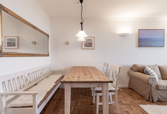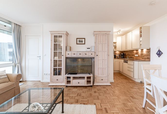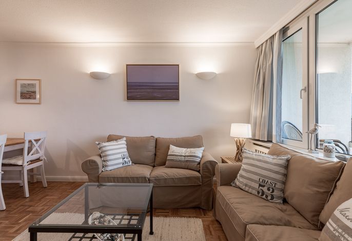Das Haus Uthlande befindet sich in einer gehobenen Ferienanlage am Rande von Wyk. Mit Blick auf die Nordsee, dem gegenüberliegenden Golfplatz und dem nahen Freizeitflughafen bietet die Wohnung mit dem Sandstrand vor der Tür, einer Wassersportschule in Laufnähe, sowie den traditionellen Reetdachhäusern auf eigenen Warften in Greveling, ein schönes Freizeitangebot. Die Wohnung befindet sich in der ersten Etage und wurde mit viele Liebe zum Detail eingerichtet. Durchdachte Tischlereinbauten und ein modernes Bad lassen keine Wünsche offen. Genießen Sie den traumhaften Blick über die Nordsee, an stürmischen Tagen von der gemütlichen Essbank aus, oder lassen Sie sich auf dem überdachten Balkon schon beim Frühstück von der Sonne kitzeln.