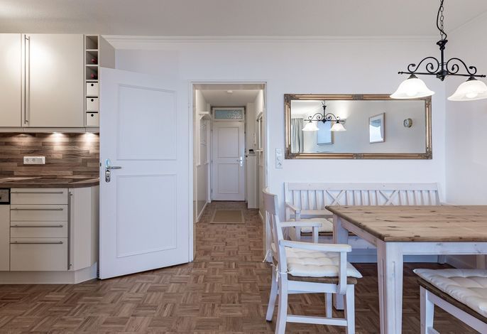 Das Haus Uthlande befindet sich in einer gehobenen Ferienanlage am Rande von Wyk. Mit Blick auf die Nordsee, dem gegenüberliegenden Golfplatz und dem nahen Freizeitflughafen bietet die Wohnung mit dem Sandstrand vor der Tür, einer Wassersportschule in Laufnähe, sowie den traditionellen Reetdachhäusern auf eigenen Warften in Greveling, ein schönes Freizeitangebot. Die Wohnung befindet sich in der ersten Etage und wurde mit viele Liebe zum Detail eingerichtet. Durchdachte Tischlereinbauten und ein modernes Bad lassen keine Wünsche offen. Genießen Sie den traumhaften Blick über die Nordsee, an stürmischen Tagen von der gemütlichen Essbank aus, oder lassen Sie sich auf dem überdachten Balkon schon beim Frühstück von der Sonne kitzeln.